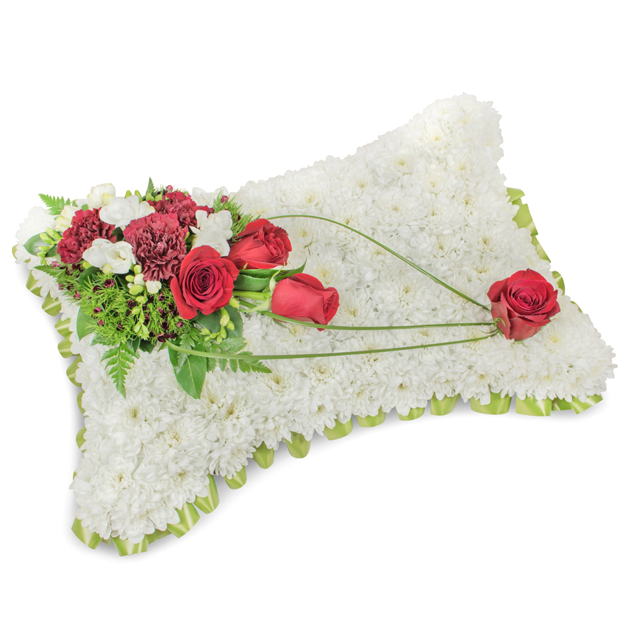 Send your heartfelt sympathy with an elegant arrangement consisting of white chrysanthemums, roses, freesias, carnations which are delicately complemented with dianthus and bear grass.